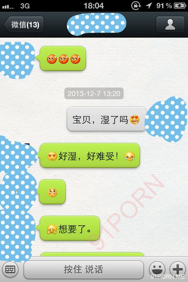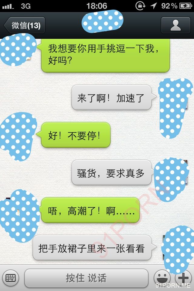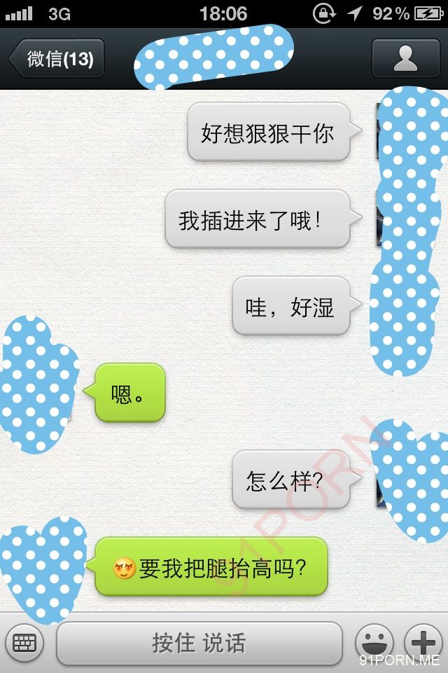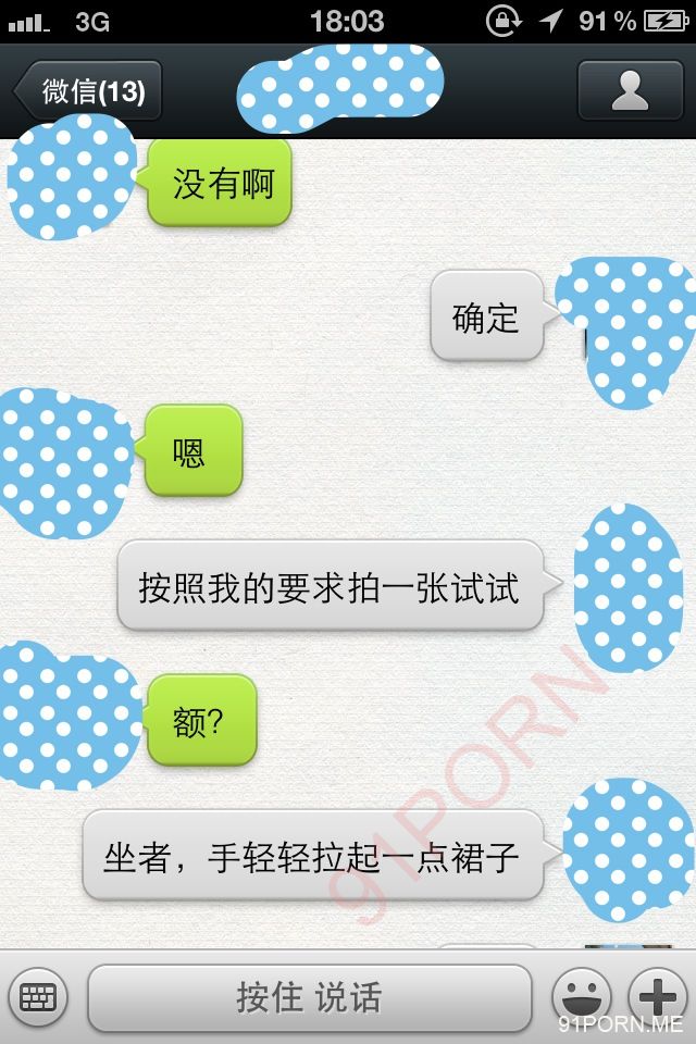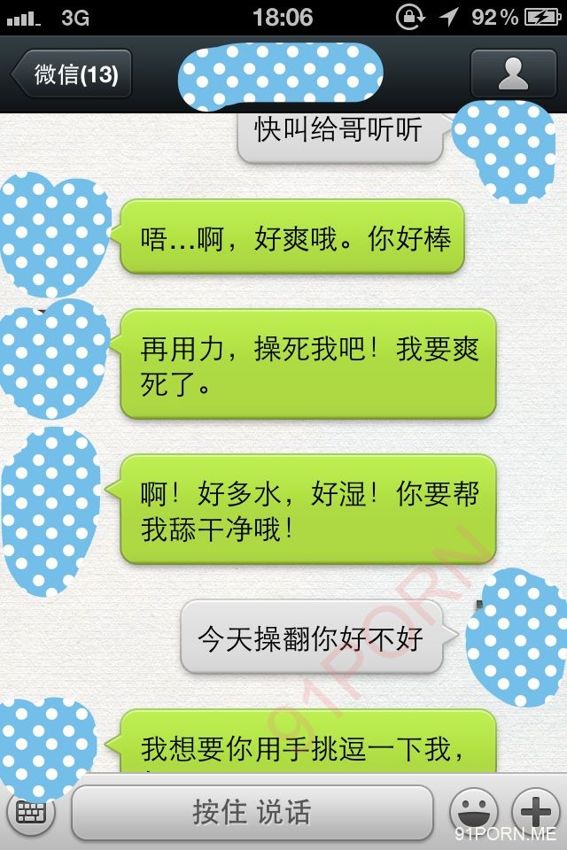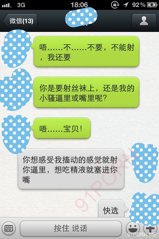 闲话少说,上次足球宝贝的续集内容在硬盘修好后我还在整理,没那么快。本季就先上一段最近无聊跟她微信调情的内容让大家娱乐娱乐罢。