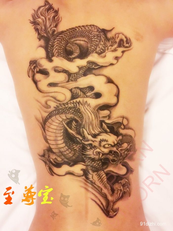 台州的帮顶,这女的很霸气的,纹这么大一条龙。