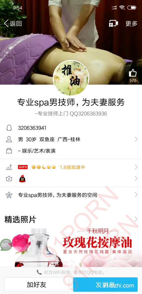 这个人是在广西桂林的建了好几个群是做异性Spa生意的。他的技术怎么样,我没找过他,我就不评论。但这个人的人品就真的很不行。总想着赚钱,整天说给介绍夫妻或者单男然后收中介费。