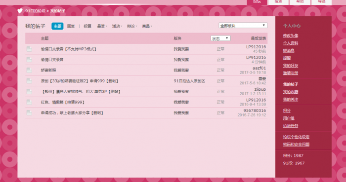 我希望大家把自己的账号和发的帖子截图发给我。优先发送91用户。