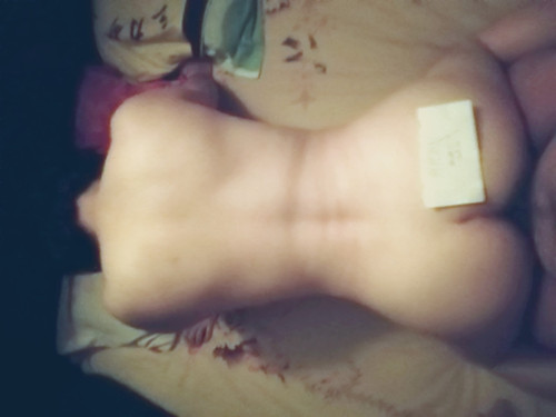 趁她意乱情迷时候,放上预先写好的纸片,抓紧拍了几张。光线比较暗,当是在拍颓废派艺术照就成