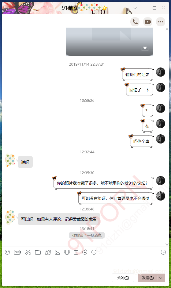 下面是征求她同意的截图,本来以为没验证,我查看收藏的时候发现,她有自己拍的91字样视频。