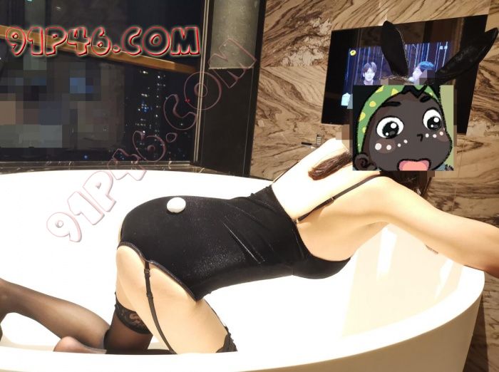 穿上兔兔装,趴在浴缸上