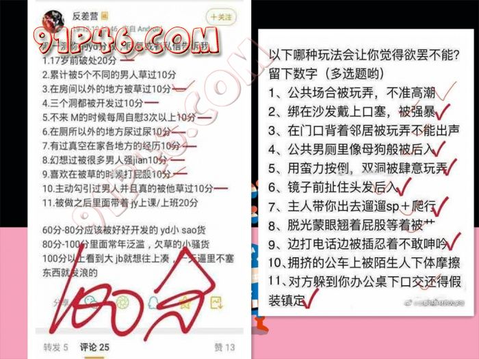 母狗甜甜上学的时候一直是很多男生追求的女孩子,平时也都是一副高冷模样很难接触上。后来慢慢慢慢我发现原来甜甜会偷偷的看一些SM的小说,并且已经知道了很多关于SM的知识还特别中意捆绑,当然那么一个极品尤物肯定是不能错过的。于是乎便开始了接下来的调教之旅,先给小母狗做了小测试,大家也可以保存下,很有趣也很刺激!