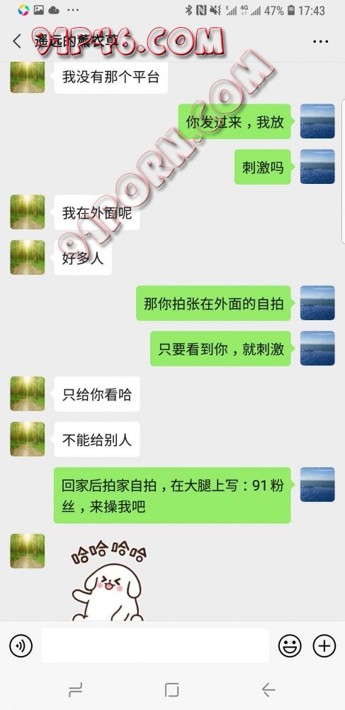 今天七夕,TINA发来表情,我说把在三亚双飞的自拍放91平台上了,让她拍痒B并写上:91粉丝们,来操我!