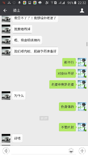 在老婆不知情的情况下,我也加了其网友,并坦言我可以配合,但我要求制定进展和过程。