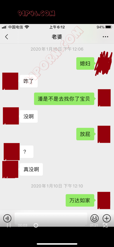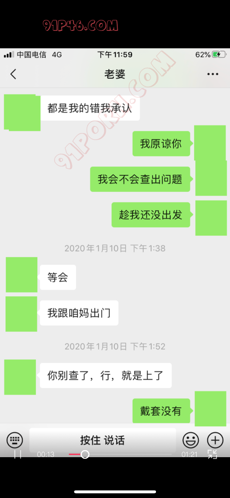 丈母娘和老婆一起去了外地玩,老婆的一个网友去找老婆了和我老婆她们开了同一个宾馆,在他们隔壁开了房间,我老婆开始以为是单纯的朋友关系,然后就过去找他聊天我丈母娘也知道,聊着聊着那男的就不老实了,然后就操了我老婆,我一直给老婆灌输3p思想可能老婆心里防线破了吧,后来我在app里发现了订房信息发现定了两个房还有个就是苹果手机的照片都通这发现了老婆和他的聊天记录,附赠一组我和我老婆的聊天记录,当时做成视频发到视频站奈何审核不通过,现在等于说我老婆给网友开的房过去被网友操了,操完了还请人家吃的饭,由于老婆没工作显而易见花的都是我的钱