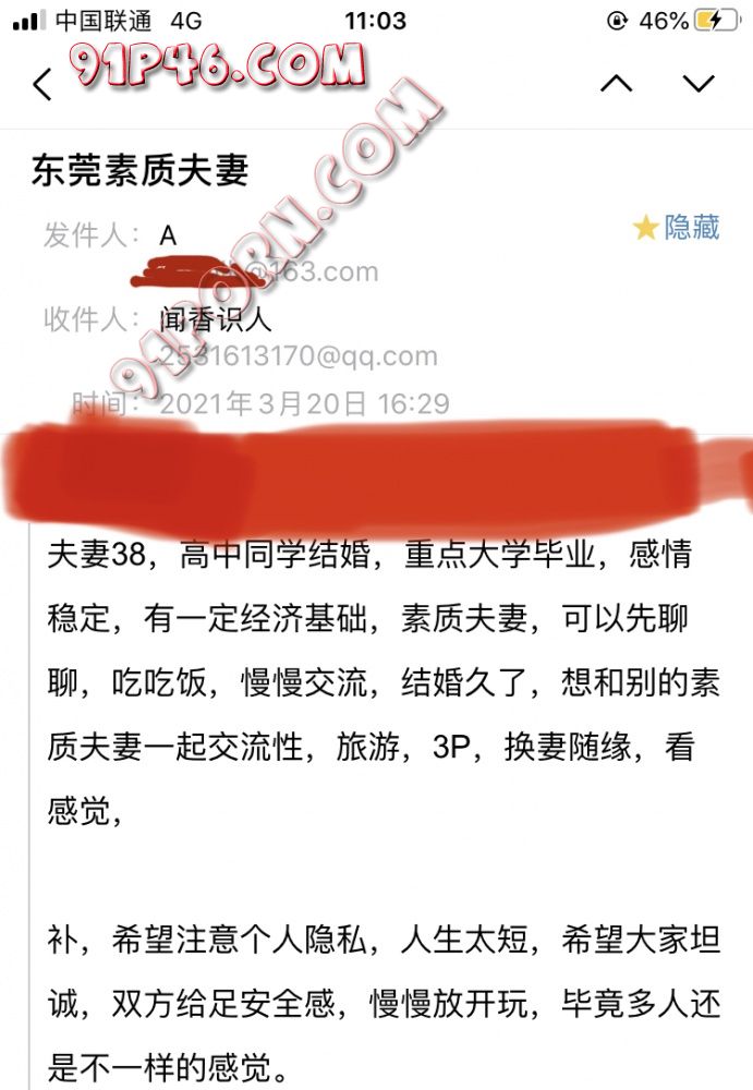 因昨晚帖子被管理员删除,估计是真实性有待考量的缘故,可以理解。也怪我心急了点,特此重发,附上该夫妻投稿来的邮件截图、我发应征单男联系方式的截图等内容证据,以示正听。