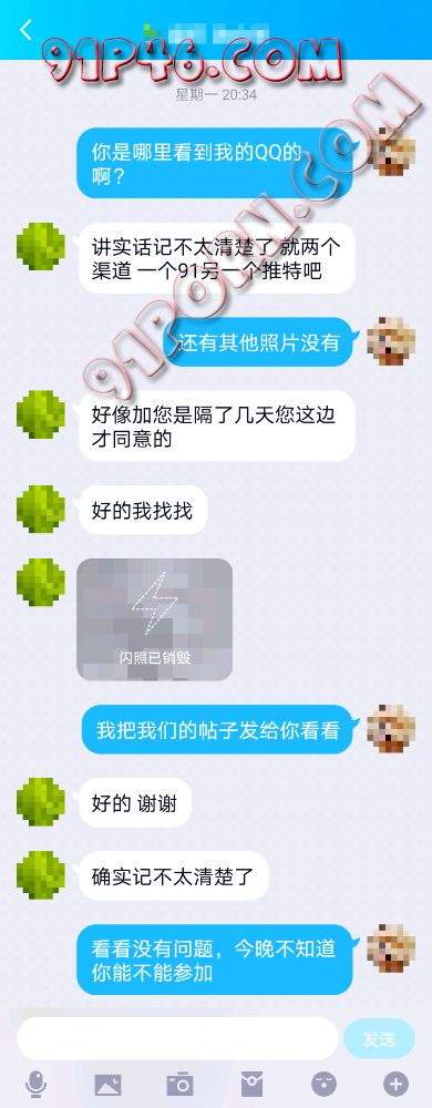 与单男从QQ添加验证通过到实战的聊天过程,由于没有现场照片,所以看官们注意看中间的时间差自行脑补画面,哈哈。