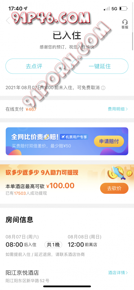 你没有申请退款吗?操你妈个逼,傻逼狗,骗我们过去再取消房间