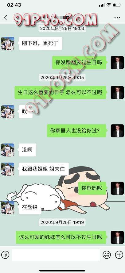于是中间我整整一个月都没跟她怎么聊,偶尔就是朋友圈相互互动一下。当我在9月25号的时候看到她发了一条朋友圈,得知今天是她生日的时候,我觉得机会来了。因为我一直有关注她的朋友圈,觉得她好像最近过得不是特别好,而且生日的时候好像还在工作,于是我在这个时候找她聊天了。聊天的第一句,还是漂亮妹妹,先夸一夸她。