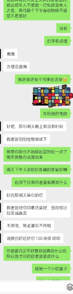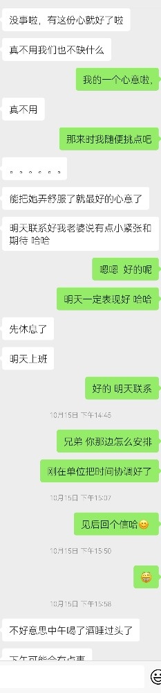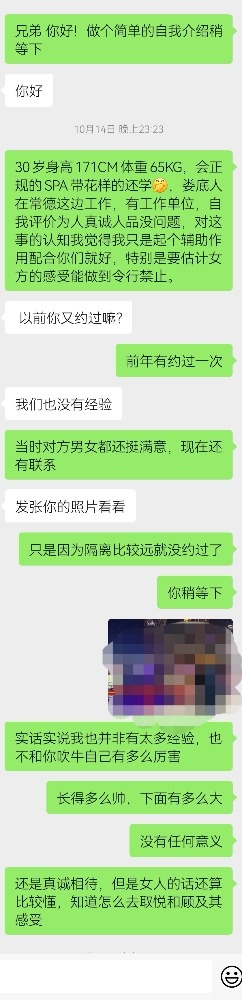 以下是那位兄弟的原始聊天记录,以经得同意,望大家能分享更多这方面的宝贵建议共勉之。小弟并非大神也并非很有经验只是很真诚的与夫妻交友同乐!!
