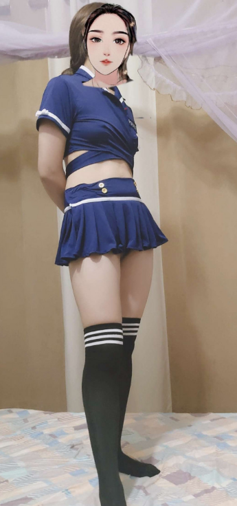 好腿,长筒黑丝也不错,就是稍微厚了点。