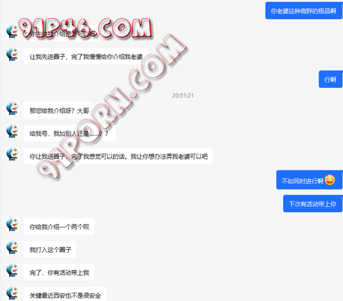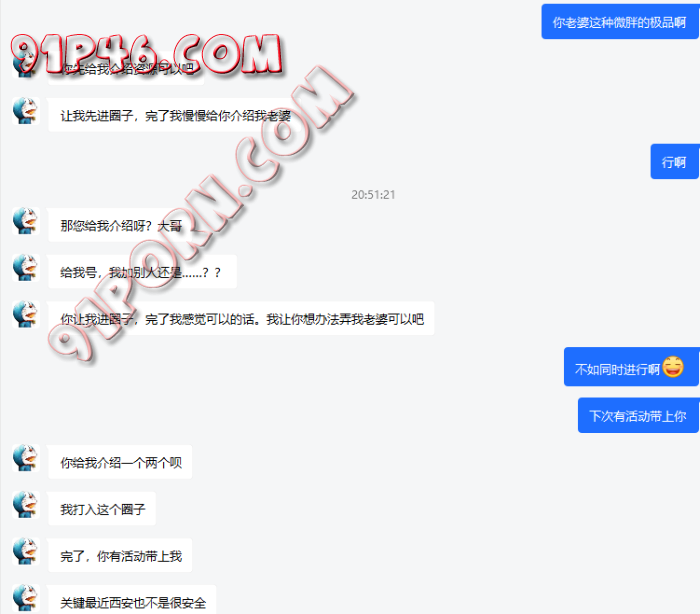本人也算是有过不少fq经验,没想到今天扎扎实实被上了一课。这几天从论坛找到一*哥,就叫b吧。B帖子说自己是夫妻,但是老婆不怎么同意,寻求帮助。我就加了,因为想着都是西安的,之前也帮新手夫妻引导过【约出来是关键一步,让女人慢慢适应身体接触,循序渐进最重要,刚开始可以是正常按摩都穿着衣服,慢慢来】。加上之后,B神奇的操作来了。
