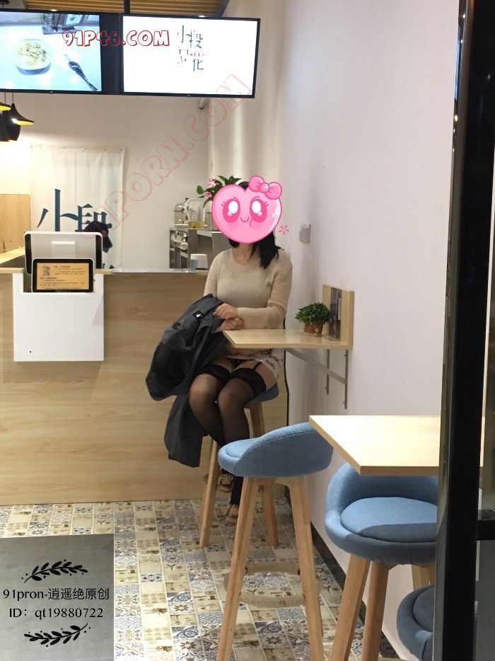 之后我们又来到一家甜品店,品尝了一些甜品。这家店沿街的一面墙和门都是玻璃的,从外面往里面看的话,可以直接看到她裙子里面的丁字裤。她在柜台点东西的时候,我在后面把她的裙子给掀了起来。当时的我就顾着拍照了,也没有注意外面有没有人看到。