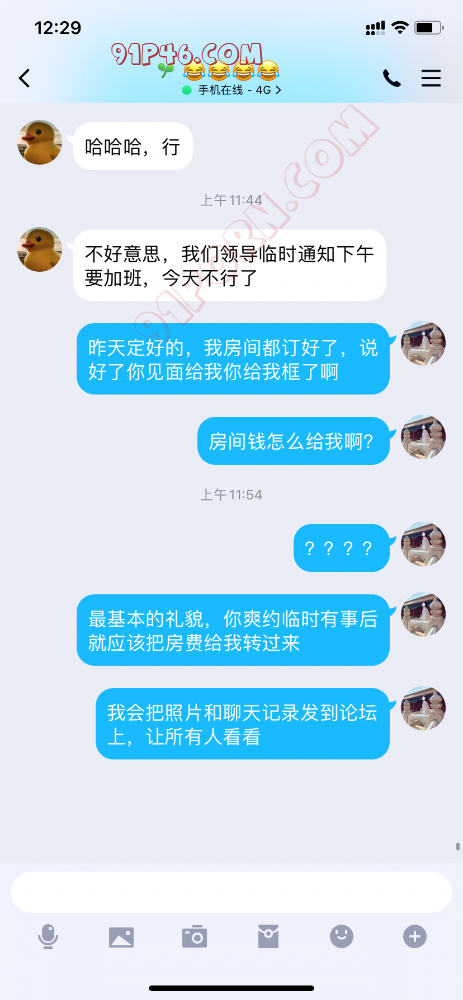 010地区的注意,碰到这种人真倒霉,定完房间让人放鸽子了,活动是为了开心,我从来不先收房费,怕认为是骗子,再影响心情。以后大家注意这个人吧