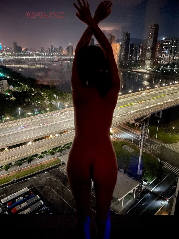 远处璀璨的夜景与白皙的胴体相得益彰
