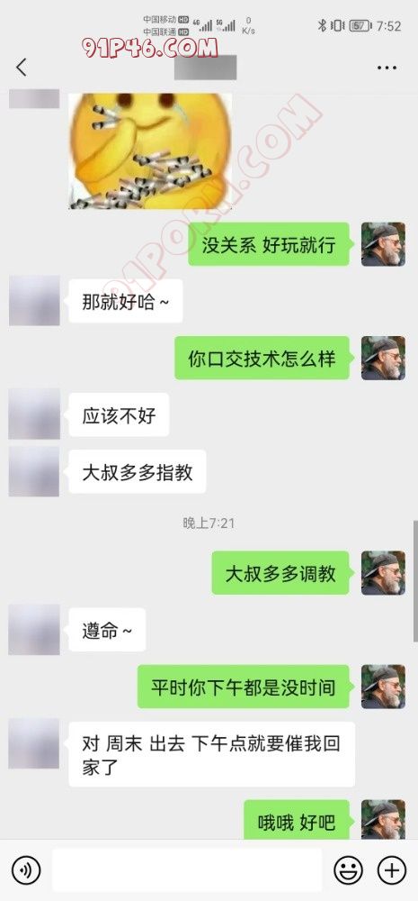 汇报一下本周的约炮成果网聊搞定5个,帮群里兄弟勾引她老婆一个。