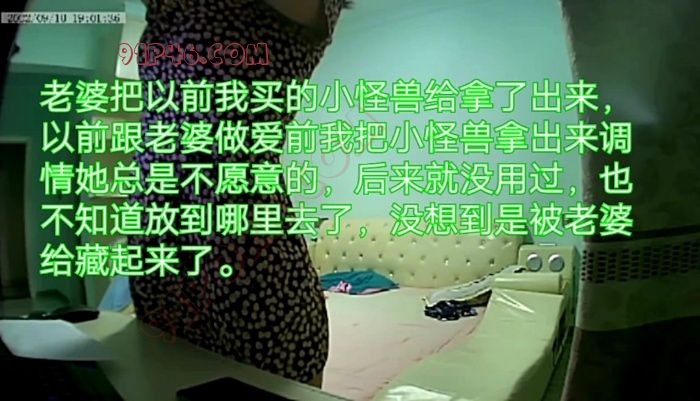 大概过了半个小时左右看见老婆把以前我买的小怪兽给拿了出来,以前跟老婆做爱前我把小怪兽拿出来调情她总是不愿意的,后来就没用过,也不知道放到哪里去了,没想到是被老婆给藏起来了。过了几分钟就看见老婆拿着小怪兽去卫生间洗了一下,从卫生间出来后她就把内裤给脱了躺在床上一边看视频一边用小怪兽自慰了起来,真的很难想到平时那么保守的老婆在性欲药的作用下会那么的淫荡,反差真的是特别大,在摄像头里看到短短的一个小时左右老婆竟然用小怪兽自慰高潮了两次。意外的是在第二次自慰高潮的时候竟然有听到老婆呻呤了几声,在我面前可是从来都没有呻呤过的。老婆这两次自慰的过程就不叙述了,直接看我分享的视频和图片就知道了。