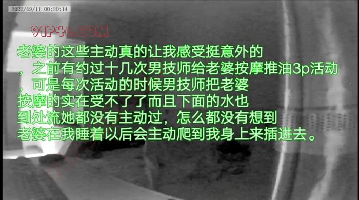 在十一点左右我洗完澡刚上床老婆就到我身上了摸,我就故意把老婆推开说太困了让她也睡觉,过了一会我装作睡着打起了呼噜咪着眼睛看老婆会不会老实的睡觉,就这样我装睡了半个小时看老婆也没有什么动作就真的睡觉了。在十二点左右的时候我迷迷糊糊的感觉到老婆用手在套弄我的鸡巴,大概过了一两分钟老婆就慢慢的爬到我身上用手抓着鸡巴磨蹭她的下面,就磨蹭了几下后老婆猛的一屁股坐了下来在我身上动了起来。老婆的这些主动真的让我感受挺意外的,之前有约过十几次男技师给老婆按摩推油3p活动,可是每次活动的时候男技师把老婆按摩的实在受不了了而且下面的水也到处流她都没有主动过,怎么都没有想到老婆在我睡着以后会主动爬到我身上来插进去。