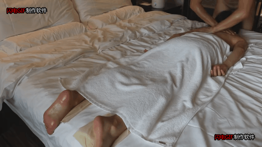 师傅常规从腿开始,貌似很正经,然后开始给屁屁补油,使劲揉了几把