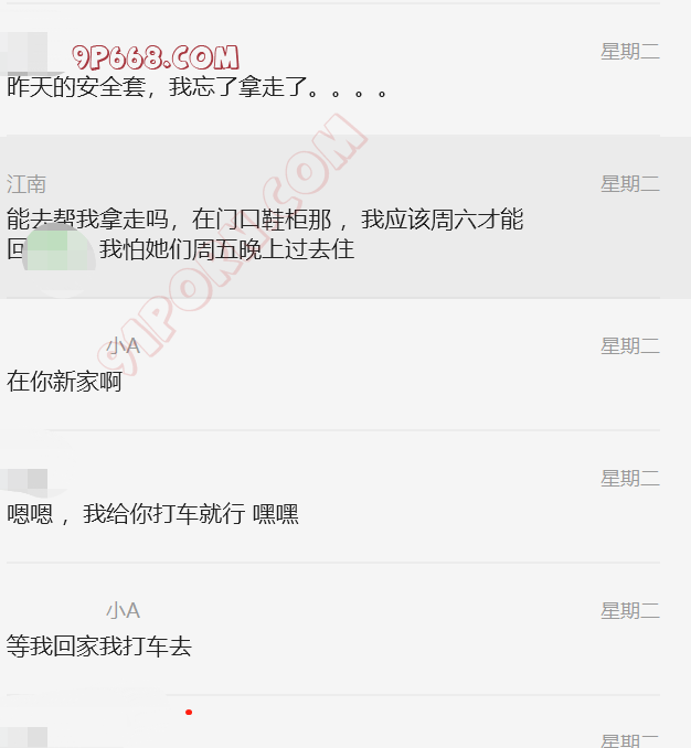 昨天见她们之前买了盒安全套,用了一个,印象中是从家里拿走了,今天出差,开着我的车,在车里也没找到,于是联系小妹(这件事只能让她去帮忙了),让她帮忙去家里拿走(房子是密码锁),不然万一媳妇去那个家发现就完了。她人真的很好,还不迟疑的去帮我取,结果没找到。我又去车里找了一遍,在后备箱放备胎那找到了。小妹也毫无怨言,对我太好了,也不图我什么,以后还是好好对她吧,还有潜力拉她闺蜜下水,双飞。