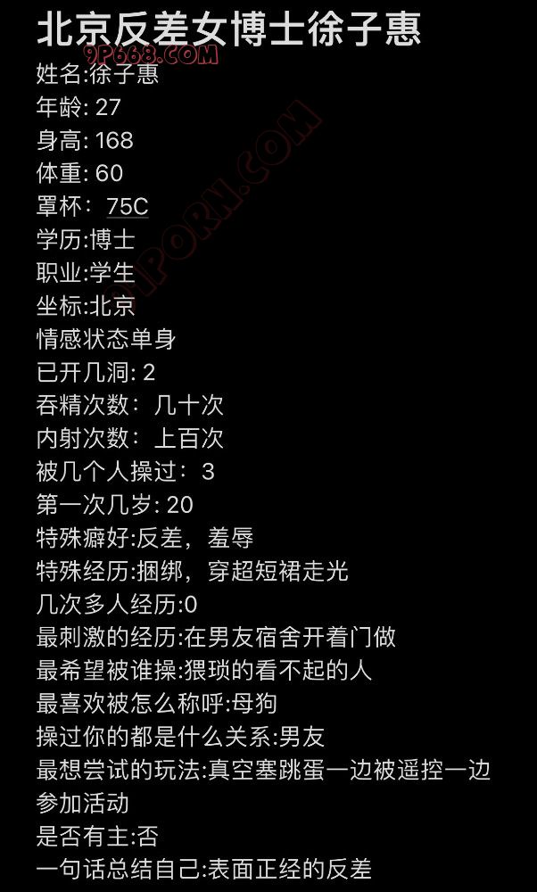 曝光个自愿来投稿求羞辱的帝都母狗女博士,女主会看回复,有认识会感兴趣的可以联系