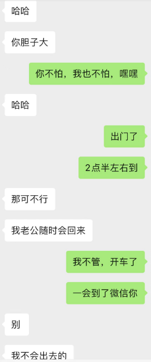 开始我胆子还是挺大的,在车上,买水果都没感觉啥,等车开到地下车库的时候,有点怂了,哈哈,她还说要不要车震下?然后真的下车去看附近有没有摄像头(她跟一个网友车震过,一直很怀念)