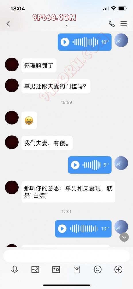 然后也懒得打字了,就语音了几句,他也语音过来了,我还觉得挺真诚,然后就直接说自己是淫妻啥的,具体的看聊天内容;然后我去买菜,回来闲扯了几句,问他是绿帽还是淫妻,他自己也不清楚,就说喜欢偷看,偷听;
