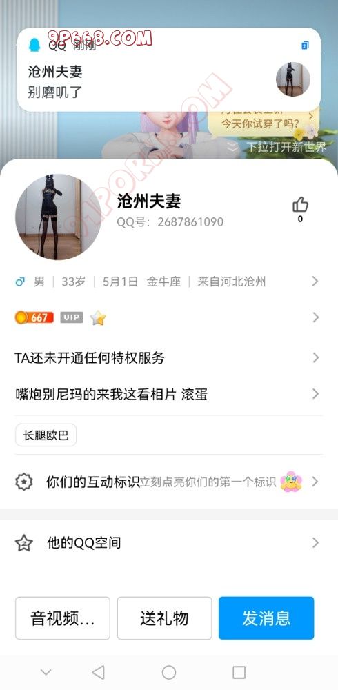 原来网名叫河间18号,现在改沧州夫妻了,qq号为2687671090大家不要再被骗了。