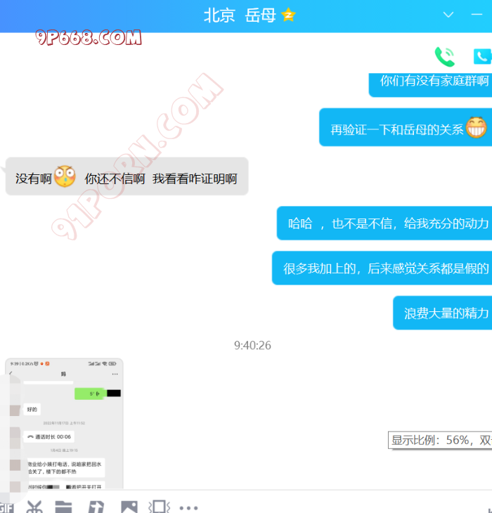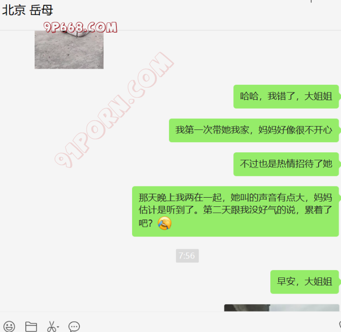 昨天晚上给岳母最后发内容,她没回复,当时应该是睡觉了,也许是不愿意回。今天早晨回了我的招呼。慢慢聊吧。上午顺便验证了女婿和岳母的关系,让他发了些和岳母的聊天记录,确认应该是女婿岳母关系了。