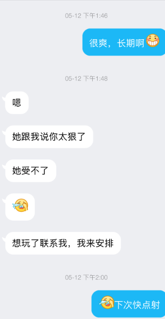 第二次,男方表示夜已深,无力再战,于是看了我们前戏后,去隔壁睡觉了。于是和妹子像情侣一样进行了第二炮,最终在妹子的求饶下,冲冲射出了第二发子弹。