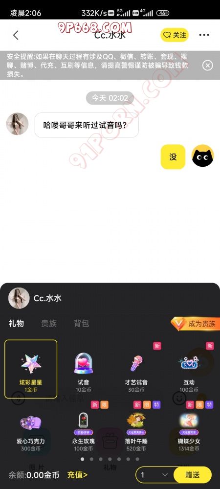 1微信直播间让你刷十块钱礼物,然后加qq。期间还有托说“我看过,很白很爽”2加了qq之后,让你下载一个pici语音聊天软件。