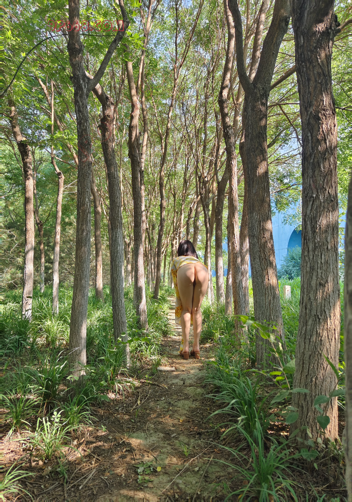 身材很赞,大长腿翘臀,这是在森林公园那边露出的吗?