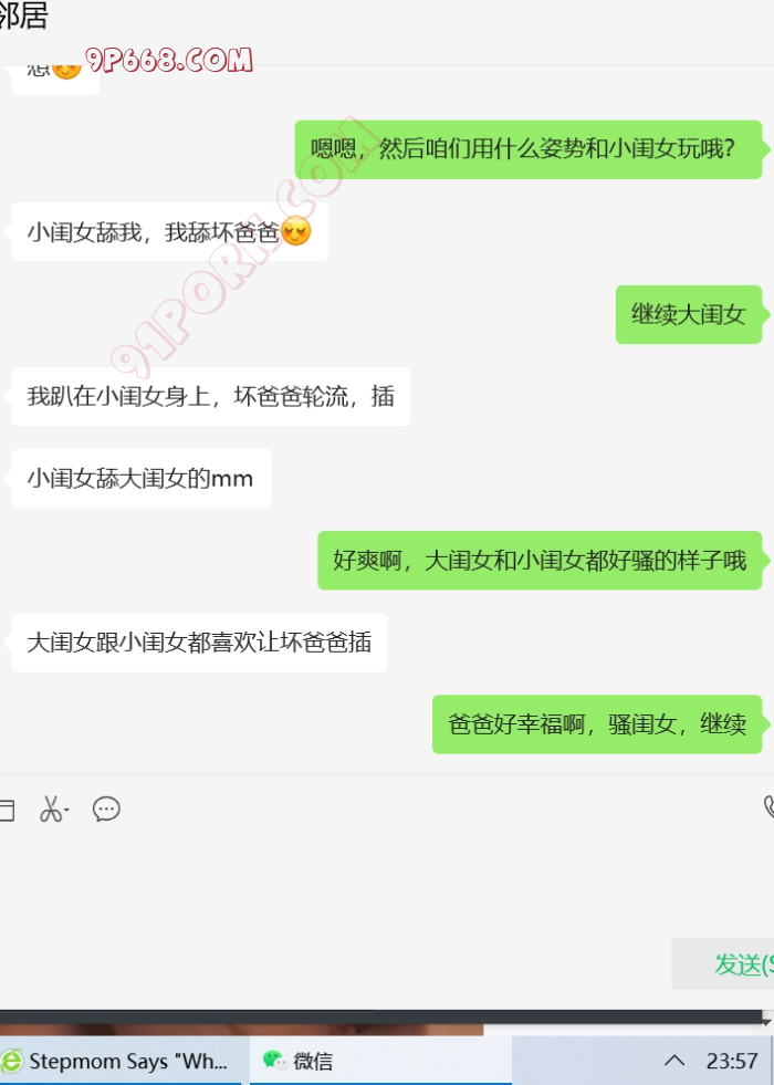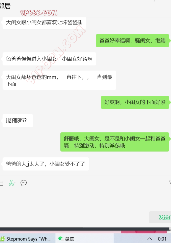 和邻居认识3年了,她单身带闺女和儿子,闺女马上高三了,儿子小学5年级。刚开始只是和她作为炮友相处,后来慢慢产生了对她闺女的想法,开始调教她,开始非常不配合,提女儿就生气,后来慢慢开始配合了,现在特别配合,经常给我带闺女的内裤,做爱的时候让她舔着闺女的内裤。现在闺女高三,等孩子上了大学,开始以妈妈男朋友的身份接触闺女吧,争取明年这个时候能够实现母女双飞。关于聊天记录的称呼,我一直叫她大闺女,叫她闺女小闺女。