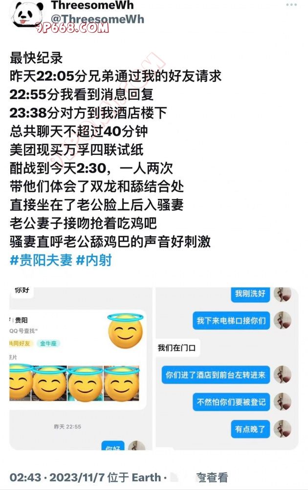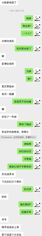 我们的沟通非常顺畅,她加了我好友之后一周内就自驾来找我发生了关系,当时我都有点懵,因为她到我附近给我发消息的时候说了她的车牌号(法拉利),我都怀疑她的经济条件和她跟我聊天的状态完全匹配不上。当然,那次也尝试了3p,一个月之内带他跟小P玩了野战、双龙、双性、内射。