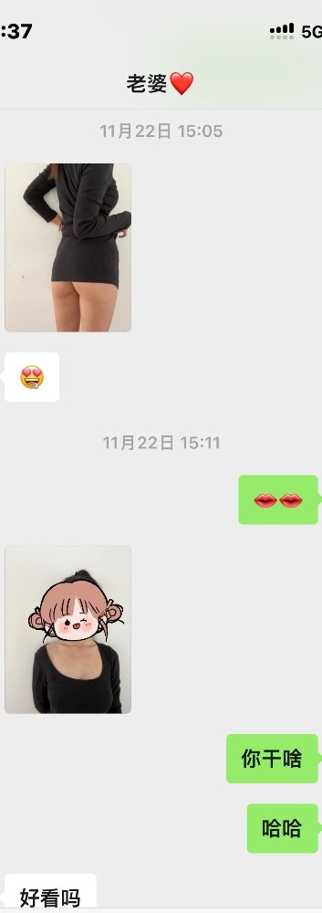 这不,22号我在出差,骚妻按耐不住给我发来两张照片