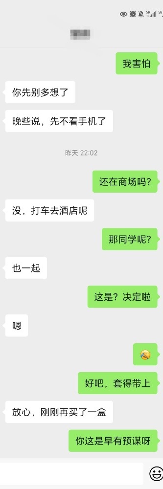 这次的事情,媳妇回来后给我简单描述一下就是一次临时起意,本来媳妇和实习生是约了看电影的,媳妇是是过年期间就约好的了,前面实习生一直在老家,节后回来才约上的,本来的想法是看完电影去钟点房温存一下就行了,所以媳妇是提前穿好了丝袜在了(怕上班被看见,特意在裤子里穿了),还提前登陆了我的华住会会员预定了房间,还有买第一盒套套的事情。
