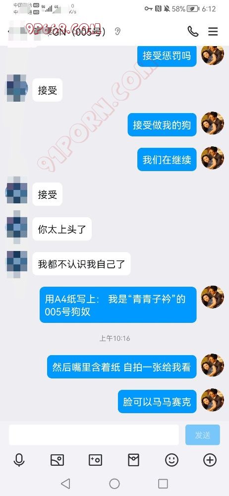 大家好,我是青青子衿,最近帮了很多夫妻进行开发和调教,也帮不少人介绍了资源,除了我比较擅长的剧情和角色扮演外,现在招募一些绿奴和绿奴夫妻,这两天收了两只绿奴狗狗,编号是005号和006号狗奴,我让他们用白纸写上:请“青青子衿”调教005号狗奴”,然后用嘴叼着白纸黑字,自拍发给我。