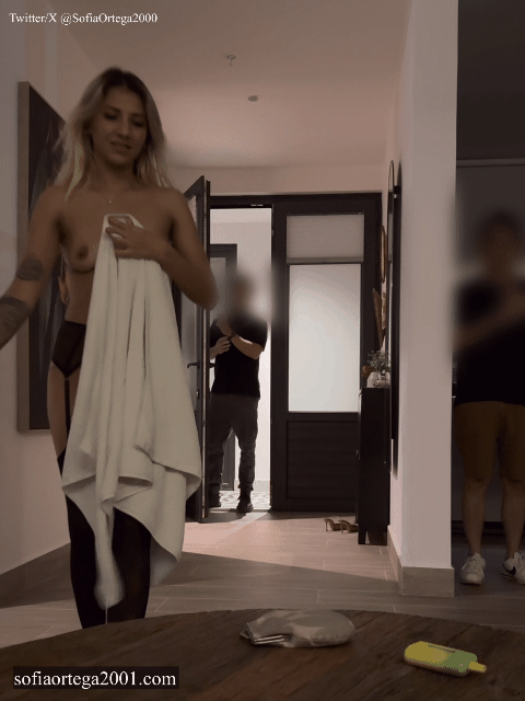 由于索菲和我之前已经有过几次在外卖员前暴露的经验,她这次也欣然同意了。