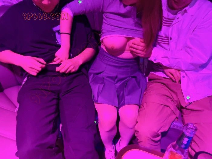 最后穿了一个T恤,把大胸露出来了,怕服务员突然进来,方便遮盖她的大胸。然后我们就开始上手了,我和我朋友去厕所清理了几把,回来之后她就一手一个开始撸,她老公先在旁边拍照,然后就开始轮流给我们口,左边一下右边一下中间一下,三个几把轮流插嘴,谁能想到,表面文文静静的一个女孩,在ktv一下吃个三个几把,被三个人轮流着玩弄······