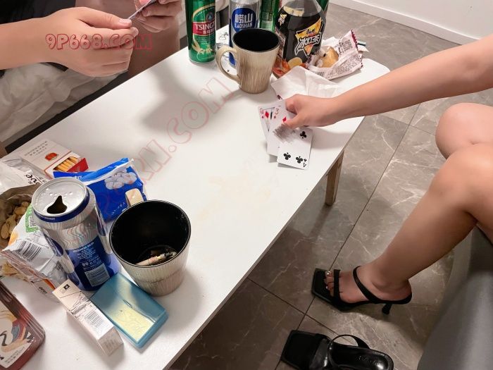 到了酒店开始喝酒聊天 见老婆微醺了我就提议打牌当然输了也是有惩罚的