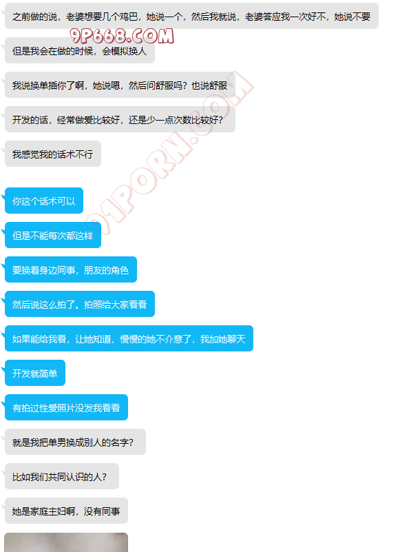 昨晚十点左右,有个绿帽加我,大家可以看聊天截图,加我的时间晚上九点多,因为喝酒了,没聊几句。今天白天简单几句指点,下午发来重要进展,详细看聊天截图。这位绿,是聪明人,一点就透,知道怎么配合。而且执行力比较强,所以进展比较快,相信要不了多久,会满足他淫妻的欲望。
