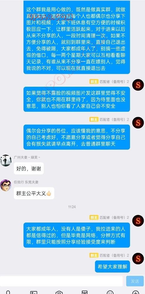 都是论坛老人了,嘴炮和假夫妻情侣别想着轻松就能进群,嘴炮也省点力气,我建群自然有我的验证方式,别过来就拿张以前拍的号码图和一些乱七八糟的视频跟我说什么老婆不在一起,女朋友异地,这些借口过时了。