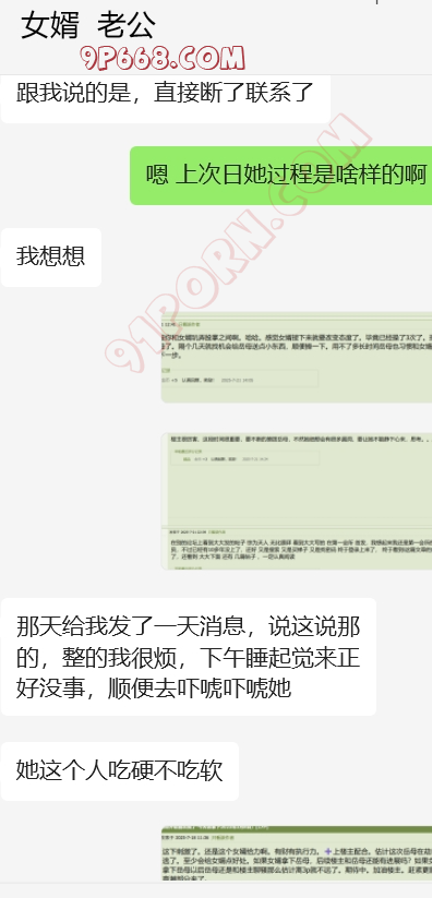 完事女婿走后,岳母立马给我打来微信电话,告诫我不要再在抖音发信息了,说被人登录了,但是就是不说是谁,我也装傻。岳母电话中情绪特别稳定,也于我之前给她灌输女婿岳母的观点有点关系。