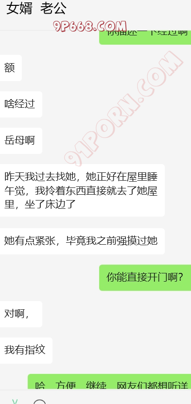 完事女婿走后,岳母立马给我打来微信电话,告诫我不要再在抖音发信息了,说被人登录了,但是就是不说是谁,我也装傻。岳母电话中情绪特别稳定,也于我之前给她灌输女婿岳母的观点有点关系。