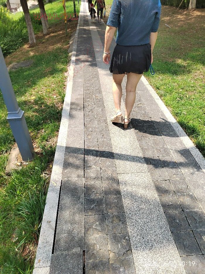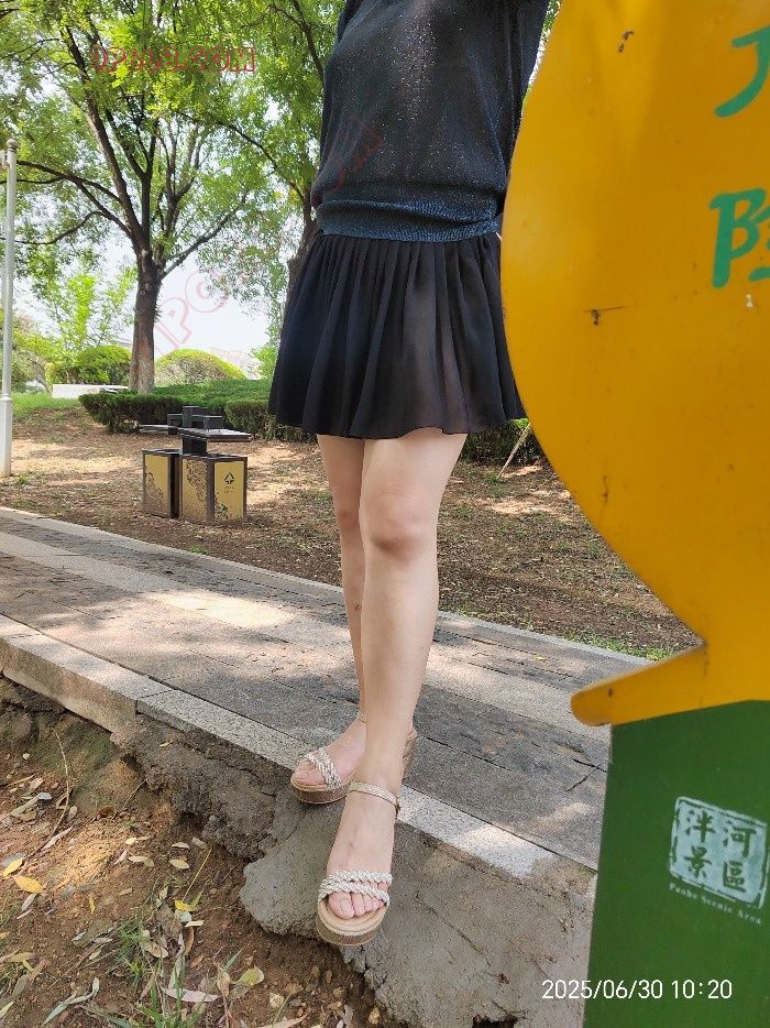 泰安泮河附近,微透短裙散步