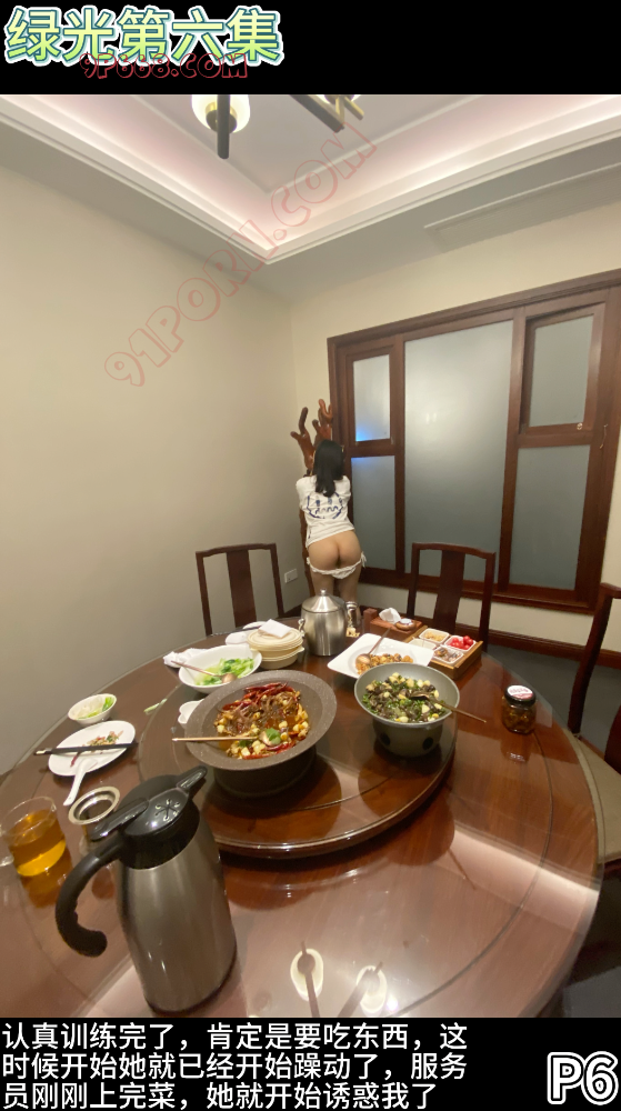 - 认真训练完了,肯定是要吃东西,这时候开始她就已经开始躁动了,服务员刚刚上完菜,她就开始诱惑我了
