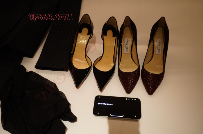 红底侧镂空的高跟鞋里面是超薄黑丝包裹住的美脚