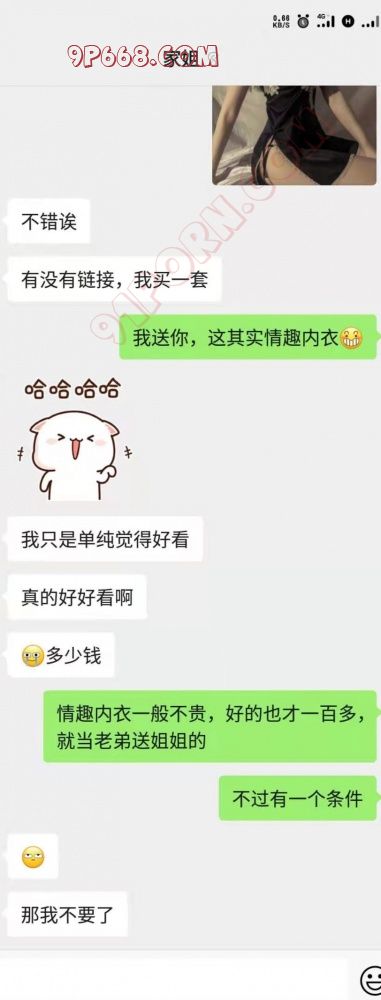 打完招呼后,因为爸妈也在家,不敢冒冒然行动,继续我们的撩骚事业——已经有了胸部照片,当然趁热打铁,提出给姐姐买情趣内衣。既让姐姐的美更加衬托,也会爽到后续的自己